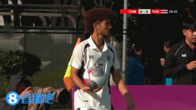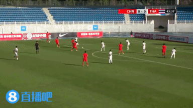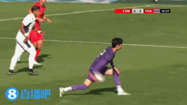 第46分钟,泰国U23门将解围时踢呲。↓