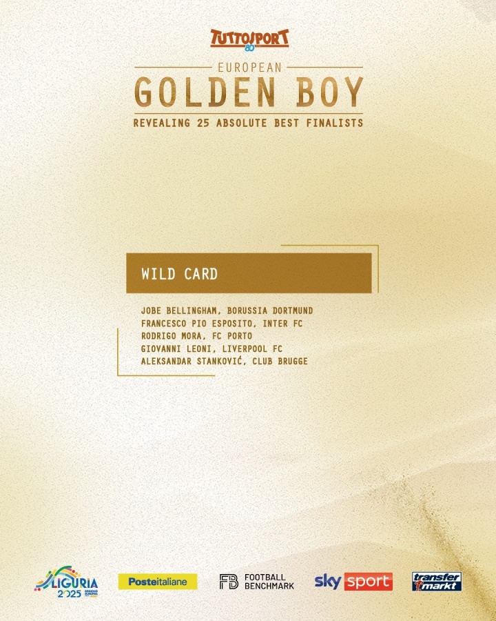 最终入围的25人候选人名单,主要由足球数据与分析合作伙伴Football Benchmark制定的"金童指数"排名前20的球players员构成。不过,高居该排行榜首的亚马尔依据规则被排除在外,因为他已获奖。此外,由《都灵体育报》编辑部选出的5名外卡球players员也加入了候选名单。