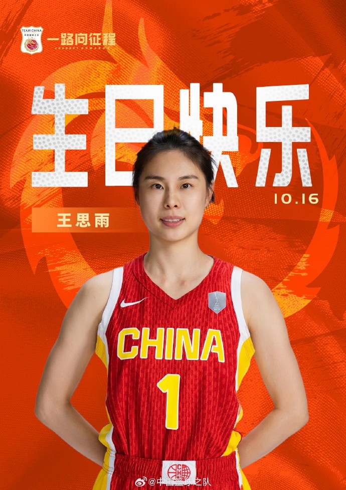 “以坚毅定格高光,用智慧执掌赛场。祝@王思雨-Rainy 生日快乐!步履坚定,为梦前行! ”中国篮球之队官博在图片旁边写道。