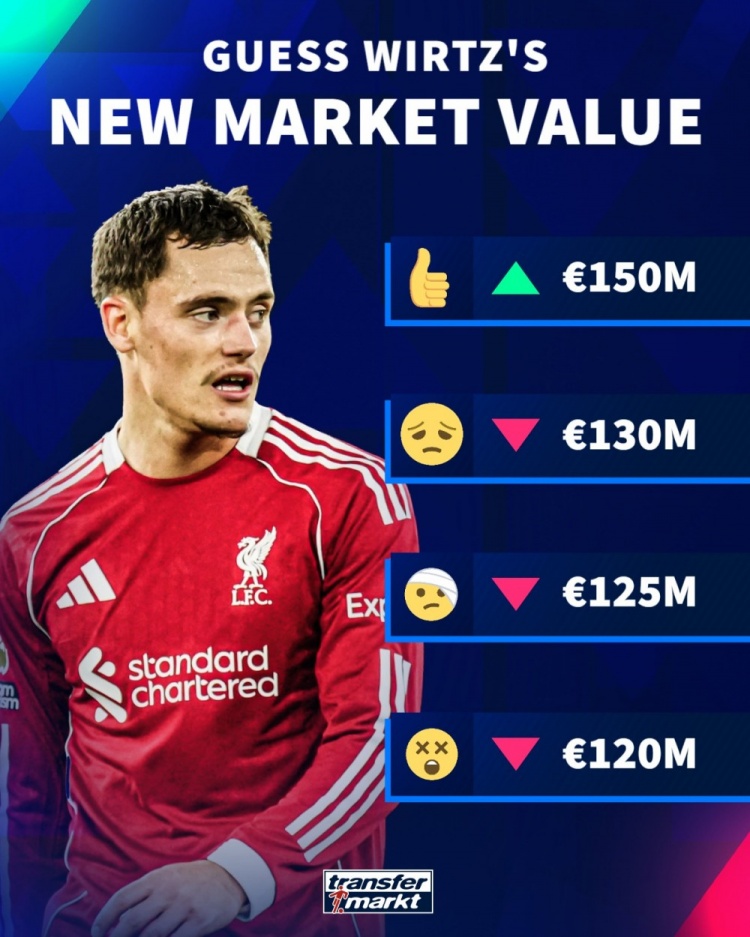 雷火官方10月16日讯 德国转会市场晒出图片,预热维尔茨身价更新。
