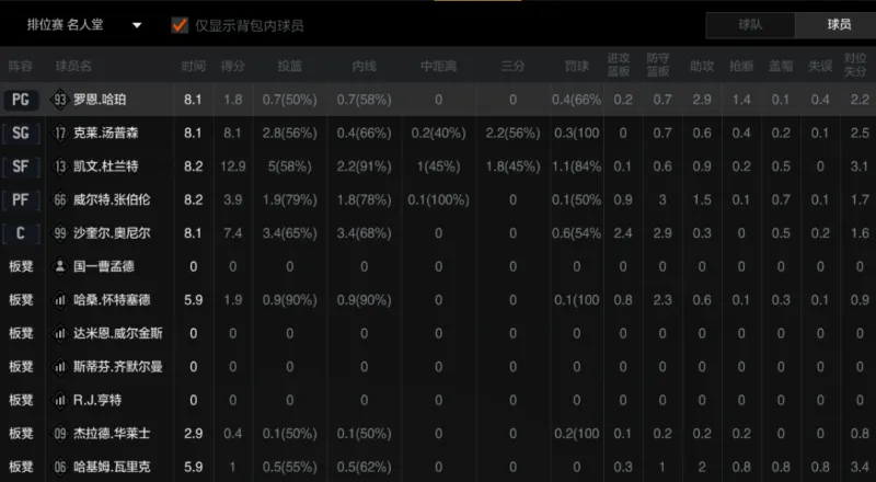 比较极限的压前四评分特训为:鲨帅不特训,杜汤只特训三分甚至也不特训,哈珀只特训组织+外防,其他人满训