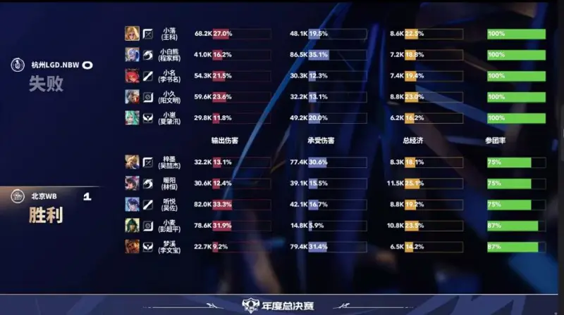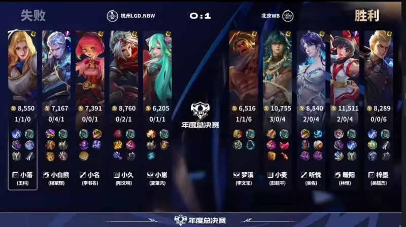 Game1:蓝色方杭州LGD.NBW 红色方北京WB