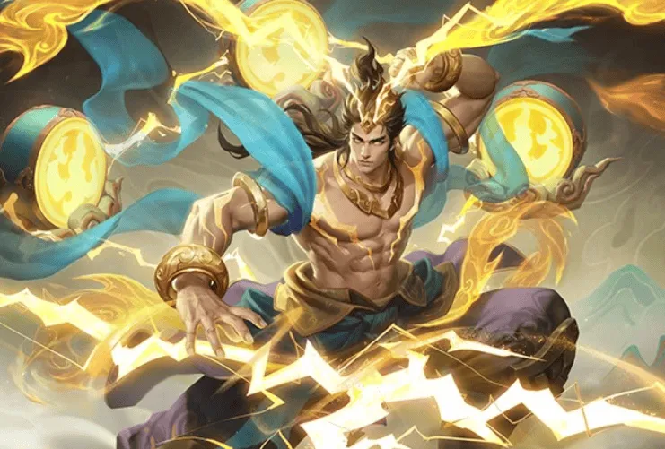 4、吕布 - 遇见神鼓:这是 2024 年推出的最新敦煌联名皮肤,以敦煌壁画中的雷公形象为灵感,吕布周身萦绕雷电,背后肩带会化作翅膀,技能特效中融入了十二雷音鼓的特性,将沙漠主宰刻画得淋漓尽致,展现出了吕布的雄伟霸气,也是传说限定品质。