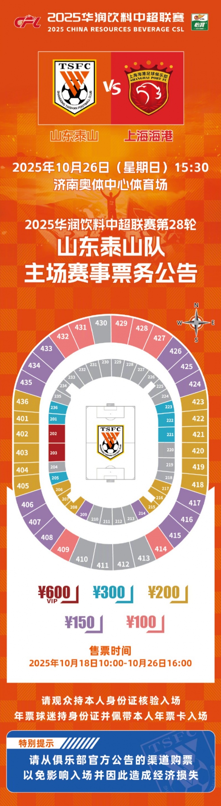 2025华润饮料中超联赛第28轮山东泰山队主场赛#事票务公告