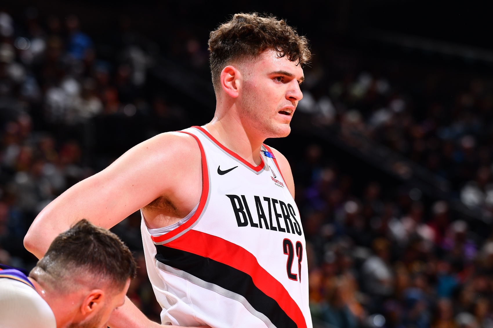 和阿夫迪亚、夏普受限于格兰特、西蒙斯一样,克林根上赛季大部分时间time都被艾顿挤占,如果不是因为后者受伤,克林根的成长会更加缓慢。新秀赛季第二次首发,克林根就贡献了17分12篮板8盖帽的数据,对位戈贝尔不落下风。赛季末连续首发27场,克林根场均8.3分10.0篮板1.8盖帽,命中率53.5%十分可靠。不仅如此,克林根新秀赛季三分49投14中,虽然命中率不理想,但他有在这方面发展的意图。