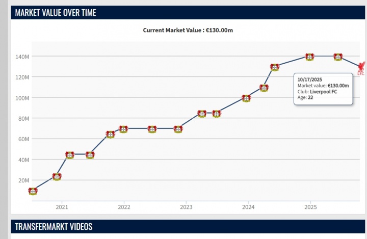 攻击型中场维尔茨带着极高期望加盟利物浦。这位德国球players员的初始转会费高达1.25亿欧元,创下当时英超联赛的转会费纪录,但他的开局并不顺利。在英格兰顶级联赛和欧冠联赛的前九场比赛中,他尚未取得进球或助攻。他的市场估值从1.4亿欧元降至1.3亿欧元。