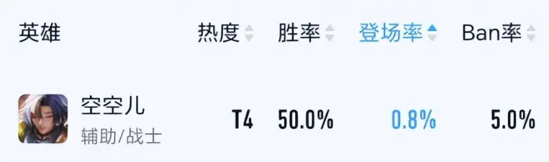 如果是顶端局,那空空儿看的就不是出场率了,而是禁用率,这样的英雄基本上放不出来。