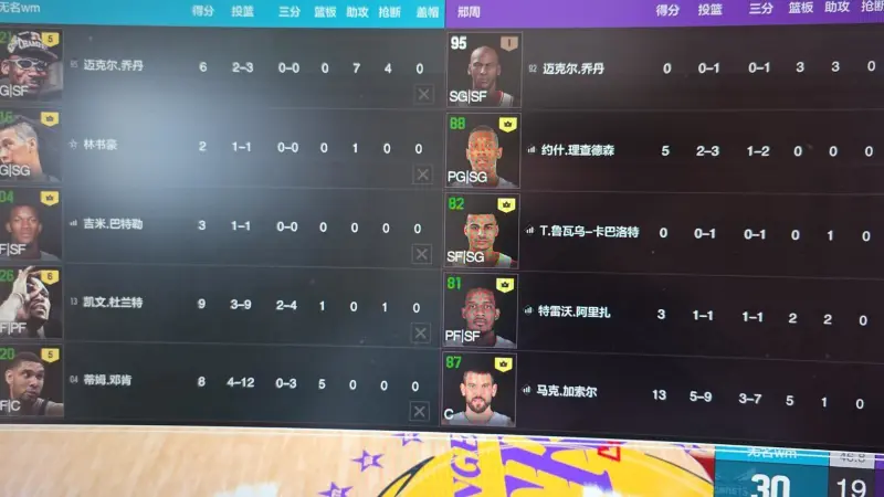 5邓完全打不动现役大洛 现役大洛+现役小加合砍7个三分 92版1乔无视95版5乔一直硬推。。