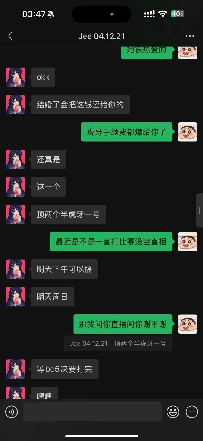 对于近期在比赛中的表现,Jee表达了深深的失望与自责。他表示,自己未能把握住进入CAC的机会,辜负了队友与粉丝的期待。Jee坦言自己“竞技状态退步,没有以前努力”,承诺接下来将沉心训练,提升技术水平,并接受外界的一切批评与建议。