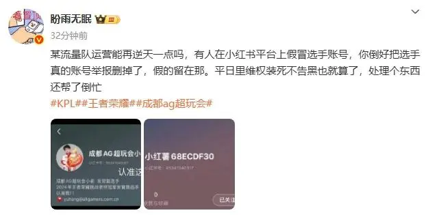 瓜主爆料:A.G运营将小俞平P台T账号当做冒充号举报删除了,什么水平?