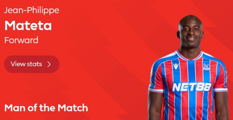 本场比赛水晶宫前锋马特塔上演帽子戏法,雷火赛后他也当选英超官方球迷票选全场更佳球players员。