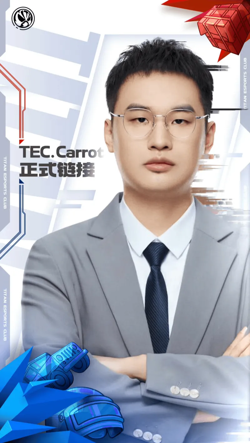 经过双方充分友好沟通及确认,并尊重个人意愿的情况下,在此向大家宣布,黄佳铭(ID:Carrot)将担任TEC和平精英战队教练一职,正式参与赛训组工作。