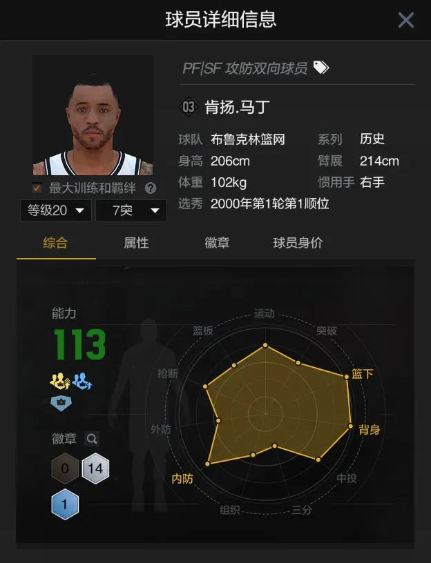 第七位肯扬马丁,当前满突身价七百多万,终结能力出色的侧翼球players员,基本没有三分投射能力,篮板球表现也比较差,整体而言娱乐意义大于实用性。