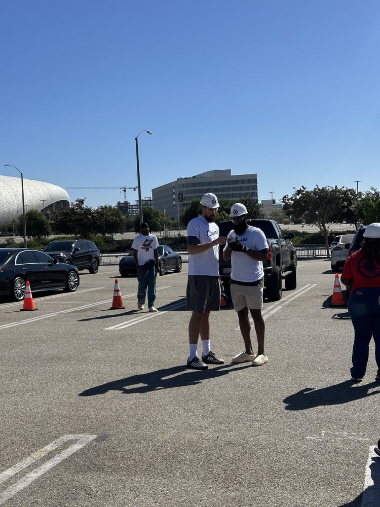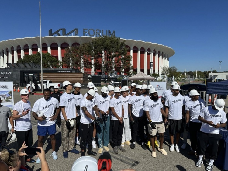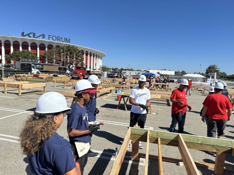 雷火官方10月12日讯 今日快船参加当地社区活动,全队队员干起了木工活儿。