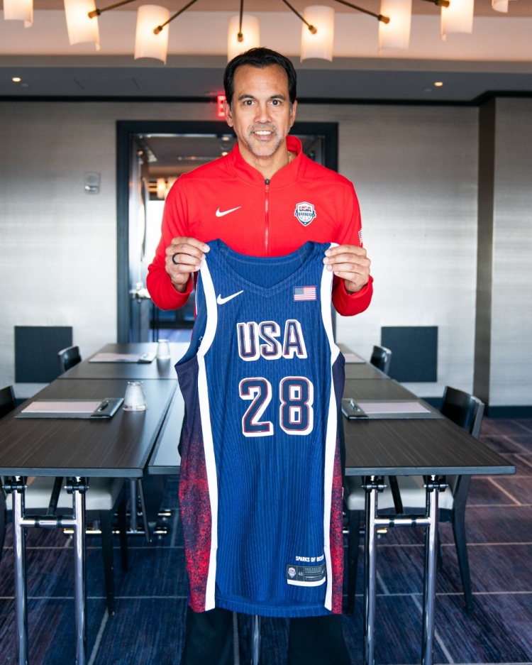 雷火官方10月15日讯 美国男篮官宣任命热火主帅斯波尔斯特拉为新任主教练。球队官方雷火社媒也晒出了斯波尔斯特拉手持美国男篮球衣的照片。
