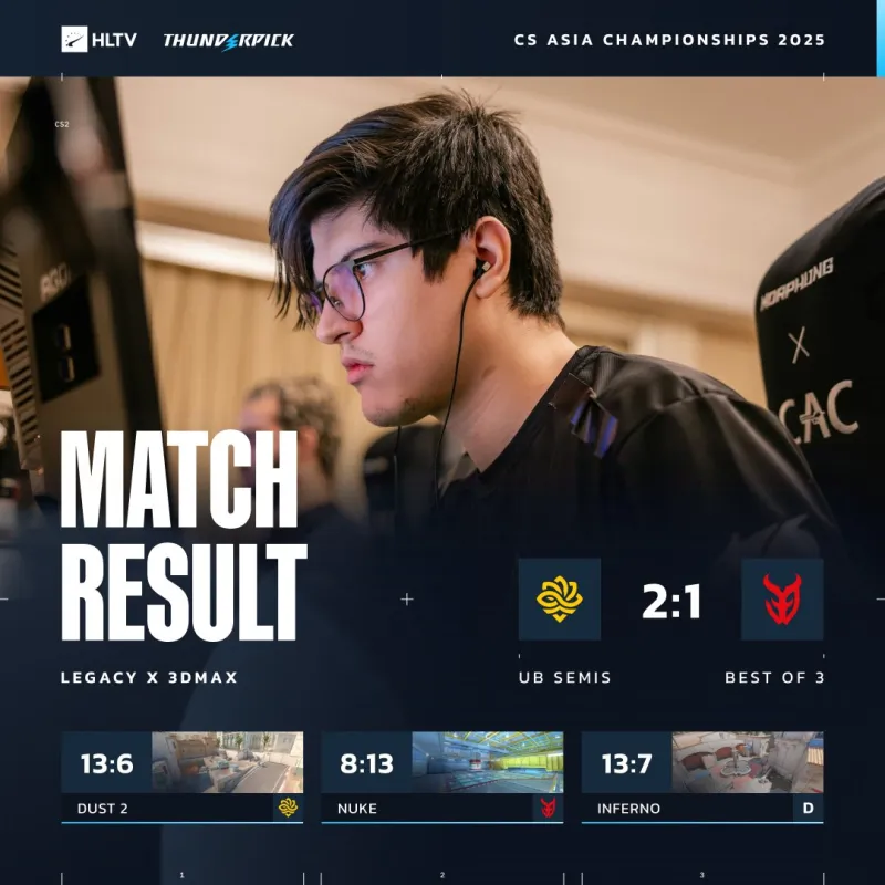 雷火官网10月14日讯 CAC 2025小组赛首日赛果汇总:A组方面,Liquid与Legacy取得两连胜会师胜者组决赛,率先出线晋级淘汰赛;夺冠热门3DMAX爆冷落入败者组。中国战队LVG首战不敌MIBR后,在败者组让一追二淘汰GamerLegion。