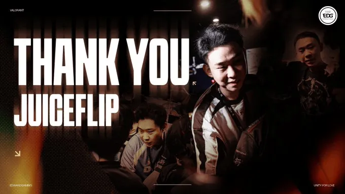 在与俱乐部诚挚沟通后,EDG无畏契约分部领队李俊升(JuiceFlip)将告别岗位,开启人生的全新历程。