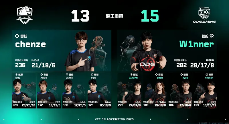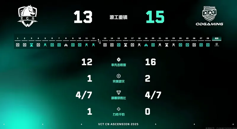 第二十回合:ODG强行从二楼进点成功,后续W1nner开启大招,ZCG剩余人员回防无力输掉关键回合