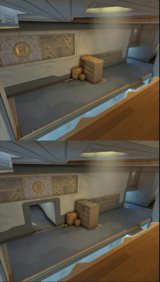 ● 移除了B区长廊的远距离射线视角 - 这个角度让英雄可以在安全距离下仍维持对部署区的强大控制力