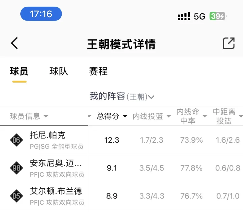 赛季初阿里纳斯带队 96 评分阵容被各种摩擦,后面转了 2 内,又升级搞了帕克,街头单排一波连胜超巨。王朝现在 103 评分也很 *** ,连胜到晋级赛,直接天崩开局连输两把,后面连赢三把拿下,最后一把还是 3 分绝杀 1 分险胜
